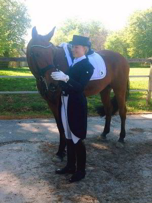 Mit Damons Diamant (der danach sein "Sandbad" auf dem Paddock -- siehe Foto -- sehr genossen hat!) belegte sie mit 66,2% im St. Georg Platz drei.